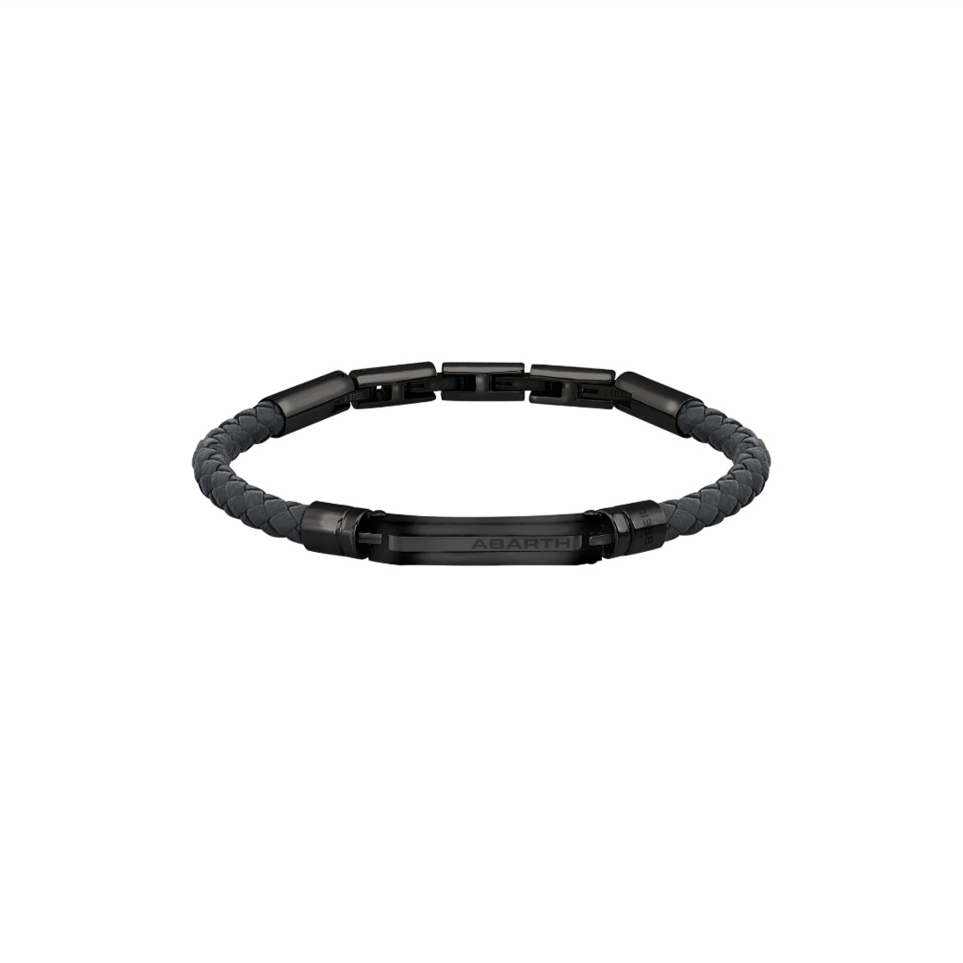 True fans of the world of motors and of Abarth in particular will not be able to help but be fascinated by this bracelet made of woven gun-colored leather, combined with a steel element of the same color decorated with the logo of the roaring car manufacturer. The adjustable clasp allows you to easily change the size of the bracelet.