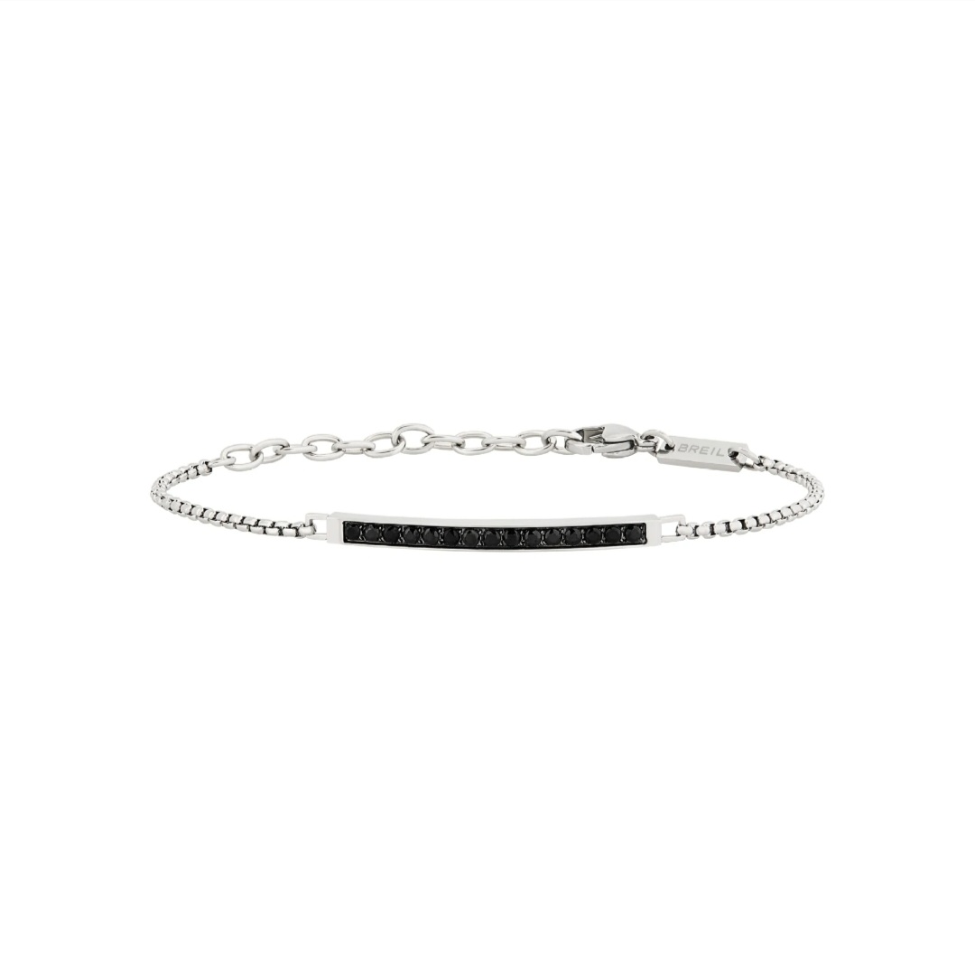 The Light Row bracelet is composed of a thin steel chain and a central element decorated with small black Cubic Zirconia, shiny and precious crystals. A jewel with great character, which nevertheless envelops the wrist with discretion and elegance.