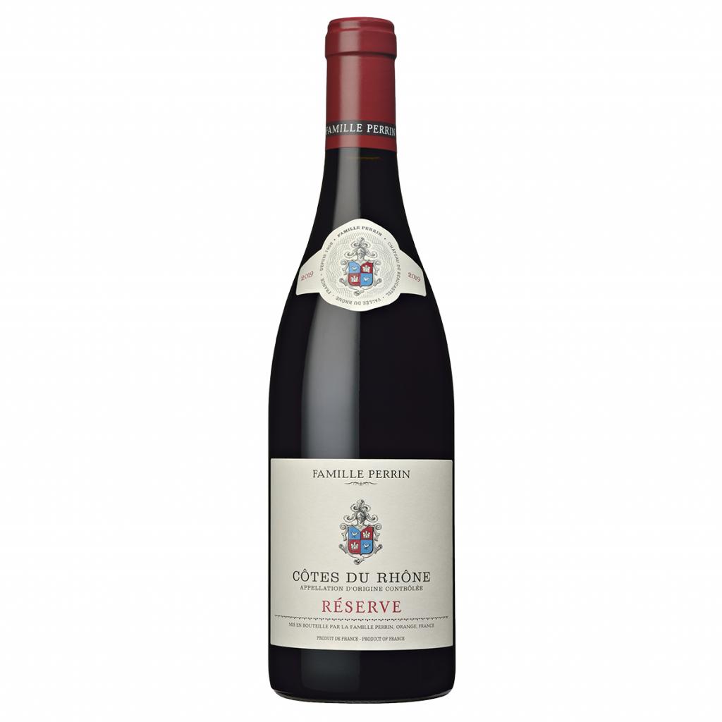 Famille Perrin Côtes du Rhône Rouge is a generous and balanced red from southern France. It features aromas of red fruit, black pepper, and thyme. The palate is smooth and rounded, with pleasant freshness. Ideal with Mediterranean cuisine, roasts, and spiced dishes.