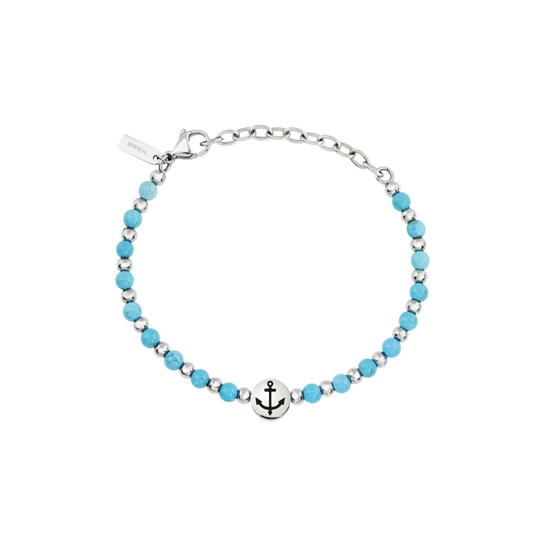 Il bracciale Sound Wave è animato da una forte ispirazione marinara. Piccole sfere in acciaio lucido e di turchese si alternano e creano un filo che decora il polso, arricchito da un elemento centrale in acciaio lucido con incisa un'ancora. Super cool se indossato da solo, mostra ancora più carattere se abbinato ad altri bracciali della stessa collezione. La chiusura regolabile permette di modificare facilmente la misura del bracciale.