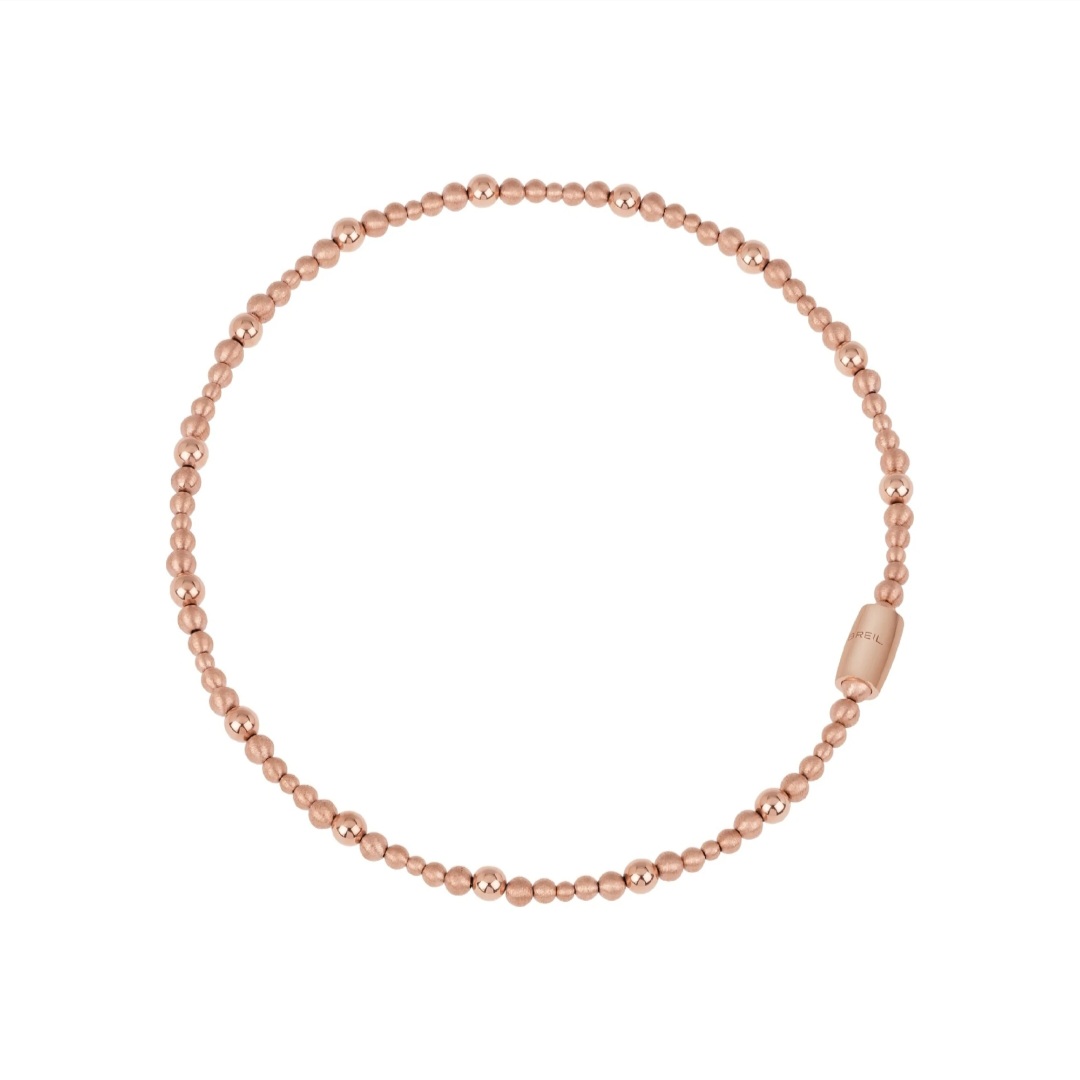 Magnetica System è la collezione di gioielli che, grazie ai suoi diversi elementi e alle chiusure magnetiche, può essere modificata e assumere forme e stili sempre diversi. Il girocollo Sun è in acciaio IP rose composto da piccole sfere di diverse finiture, diamantata e lucida. Può essere indossato da solo o abbinato ad ogni altro elemento della collezione, per creare nuove collane di diverse lunghezze.
