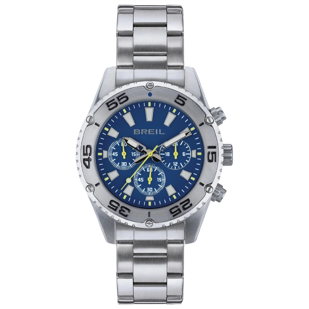 Il cronografo da uomo Sprinter racchiude tutte le caratteristiche dell'orologio sportivo. Realizzato in acciaio lucido, ha una cassa di 43 mm che lo rende immediatamente ben presente al polso. La lunetta in acciaio satinato è decorata da numeri ben leggibili e il quadrante blu è ricco di dettagli: dagli indici oversize con luminous, alle sfere gialle che danno un tocco di colore.